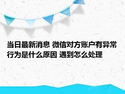 导读 微信对方账户有异常行为是什么原因 遇到怎么处理!现在是大家比较关注的,因为目前微信对方账户有异常行为是什么原因 遇到怎么处理!的...