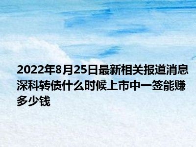 - 2022-08-25当日最新消息 深科转债什么时候上市中一签能赚多少钱