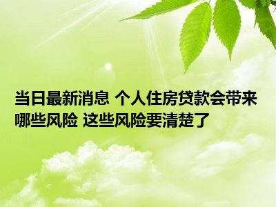 个人住房贷款会带来哪些风险 这些风险要清楚了现在是大家比较关注的,因为目前个人住房贷款会带来哪些风险 这些风险要清楚了的热度是相对比较高的,那么既然大家对此都比较感兴趣,小S也是特地到网上去查找了一些相关的信息,下面就由小S来把这些信息来分享给大家一起查阅吧。