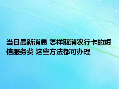 导读 怎样取消农行卡的短信服务费 这些方法都可办理现在是大家比较关注的,因为目前怎样取消农行卡的短信服务费 这些方法都可办理的热度是相...