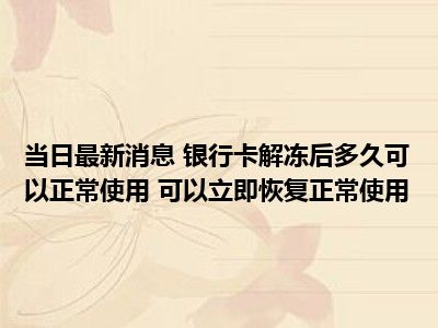 导读 银行卡解冻后多久可以正常使用 可以立即恢复正常使用现在是大家比较关注的,因为目前银行卡解冻后多久可以正常使用 可以立即恢复正常使...