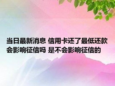 信用卡还了最低还款会影响征信吗 是不会影响征信的现在是大家比较关注的,因为目前信用卡还了最低还款会影响征信吗 是不会影响征信的的热度是相对比较高的,那么既然大家对此都比较感兴趣,小S也是特地到网上去查找了一些相关的信息,下面就由小S来把这些信息来分享给大家一起查阅吧。