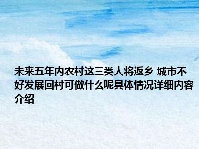 想必大家现在对于未来五年内农村这三类人将返乡 城市不好发展回村可做什么呢方面的消息都是比较想了解的吧,那么针对于未来五年内农村这三类人将返乡 城市不好发展回村可做什么呢方面的消息,小西自然是收集了一些相关方面的消息,那么如果您感兴趣的话,可以看下下面小西为大家收集到与未来五年内农村这三类人将返乡 城市不好发展回村可做什么呢相关的消息吧。