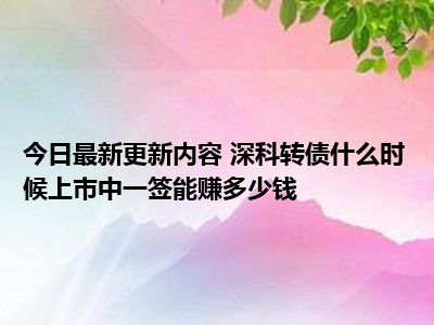 目前深科转债什么时候上市中一签能赚多少钱的关注度特别高,热度非常高,这也证明大家现在都在关注这个事情,那么具体的深科转债什么时候上市中一签能赚多少钱的事情是怎么回事呢,小编收集了一些相关的内容来给大家一起查阅一下把。