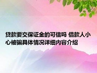 想必大家现在对于贷款要交保证金的可信吗 借款人小心被骗方面的消息都是比较想了解的吧,那么针对于贷款要交保证金的可信吗 借款人小心被骗方面的消息,小西自然是收集了一些相关方面的消息,那么如果您感兴趣的话,可以看下下面小西为大家收集到与贷款要交保证金的可信吗 借款人小心被骗相关的消息吧。
