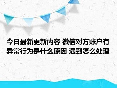 目前微信对方账户有异常行为是什么原因 遇到怎么处理!的关注度特别高,热度非常高,这也证明大家现在都在关注这个事情,那么具体的微信对方账户有异常行为是什么原因 遇到怎么处理!的事情是怎么回事呢,小编收集了一些相关的内容来给大家一起查阅一下把。