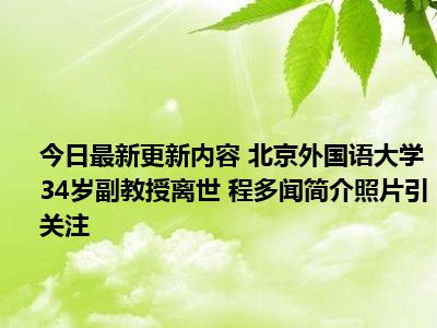 导读 目前北京外国语大学34岁副教授离世 程多闻简介照片引关注的关注度特别高,热度非常高,这也证明大家现在都在关注这个事情,那么具体的北...