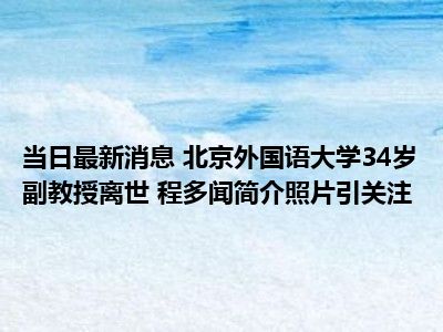 北京外国语大学34岁副教授离世 程多闻简介照片引关注现在是大家比较关注的,因为目前北京外国语大学34岁副教授离世 程多闻简介照片引关注的热度是相对比较高的,那么既然大家对此都比较感兴趣,小S也是特地到网上去查找了一些相关的信息,下面就由小S来把这些信息来分享给大家一起查阅吧。