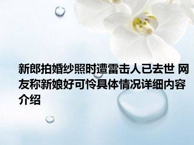 想必大家现在对于新郎拍婚纱照时遭雷击人已去世 网友称新娘好可怜方面的消息都是比较想了解的吧,那么针对于新郎拍婚纱照时遭雷击人已去世 网友称新娘好可怜方面的消息,小西自然是收集了一些相关方面的消息,那么如果您感兴趣的话,可以看下下面小西为大家收集到与新郎拍婚纱照时遭雷击人已去世 网友称新娘好可怜相关的消息吧。