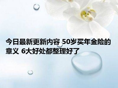 导读 目前50岁买年金险的意义 6大好处都整理好了的关注度特别高,热度非常高,这也证明大家现在都在关注这个事情,那么具体的50岁买年金险的...