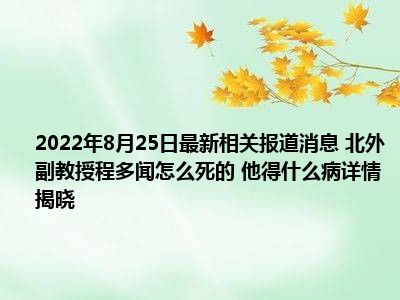 - 2022-08-25今日最新更新内容 北外副教授程多闻怎么死的 他得什么病详情揭晓