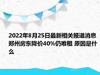 - 2022-08-25今日最新更新内容 郑州房东降价40%仍难租 原因是什么