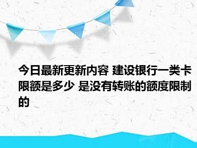 目前建设银行一类卡限额是多少 是没有转账的额度限制的的关注度特别高,热度非常高,这也证明大家现在都在关注这个事情,那么具体的建设银行一类卡限额是多少 是没有转账的额度限制的的事情是怎么回事呢,小编收集了一些相关的内容来给大家一起查阅一下把。
