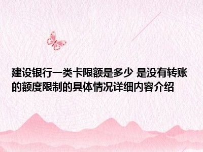导读 想必大家现在对于建设银行一类卡限额是多少 是没有转账的额度限制的方面的消息都是比较想了解的吧,那么针对于建设银行一类卡限额是多少...