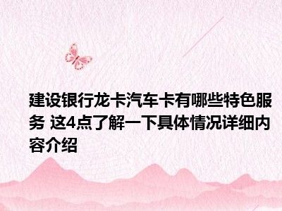 - 建设银行龙卡汽车卡有哪些特色服务 这4点了解一下具体情况详细内容介绍