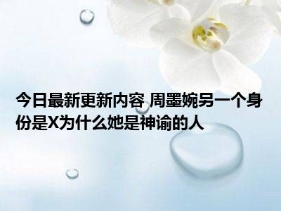 导读目前周墨婉另一个身份是X为什么她是神谕的人的关注度特别高,热度非常高,这也证明大家现在都在关注这个事情,那么具体的周墨婉另一个身...