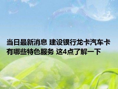 - 今日最新更新内容 建设银行龙卡汽车卡有哪些特色服务 这4点了解一下