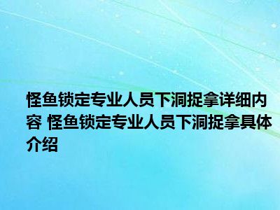 1、想必大家现在对于怪鱼锁定!专业人员下洞捉拿方面的信息都是比较想了解的吧,那么针对于怪鱼锁定!专业人员下洞捉拿方面的信息,小西自然是收集了一些相关方面的信息,那么如果您感兴趣的话,可以看下下面小西为大家收集到与怪鱼锁定!专业人员下洞捉拿相关的信息吧。
