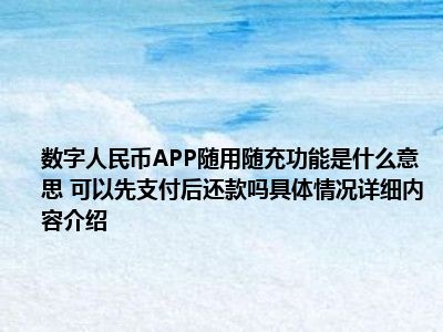 - 数字人民币APP随用随充功能是什么意思 可以先支付后还款吗具体情况详细内容介绍
