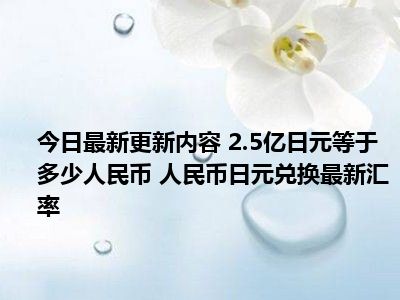 导读 目前2.5亿日元等于多少人民币 人民币日元兑换最新汇率的关注度特别高,热度非常高,这也证明大家现在都在关注这个事情,那么具体的2.5亿...