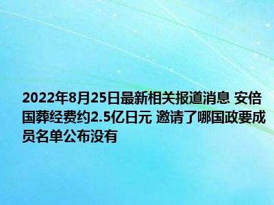 今天大家应该都在关注安倍国葬经费约2.5亿日元 邀请了哪国政要成员名单公布没有这件事,那么很多小伙伴在关注的同时自然是想要了解到安倍国葬经费约2.5亿日元 邀请了哪国政要成员名单公布没有的具体来龙去脉了,JN小编今天也是特地在网络上搜集了一些相关的信息内容来分享给大家,感兴趣的小伙伴可以好好看下。