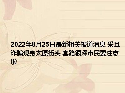 - 2022年8月25日最新相关报道消息 采耳诈骗现身太原街头 套路很深市民要注意啦