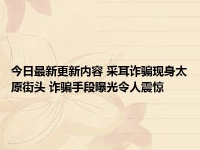 导读 目前采耳诈骗现身太原街头 诈骗手段曝光令人震惊的关注度特别高,热度非常高,这也证明大家现在都在关注这个事情,那么具体的采耳诈骗现...