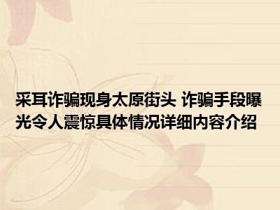 导读 想必大家现在对于采耳诈骗现身太原街头 诈骗手段曝光令人震惊方面的消息都是比较想了解的吧,那么针对于采耳诈骗现身太原街头 诈骗手段...