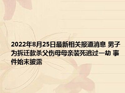 - 2022-08-25今日最新更新内容 男子为拆迁款杀父伤母母亲装死逃过一劫 事件始末披露