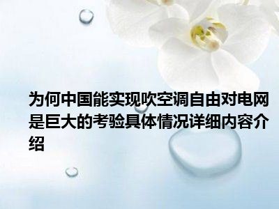 导读想必大家现在对于为何中国能实现吹空调自由对电网是巨大的考验方面的消息都是比较想了解的吧,那么针对于为何中国能实现吹空调自由对电网...
