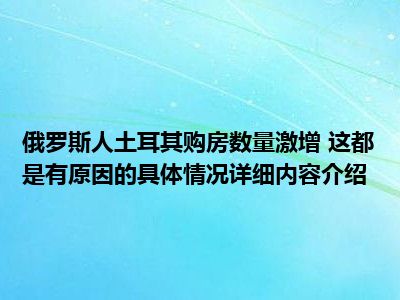想必大家现在对于俄罗斯人土耳其购房数量激增 这都是有原因的方面的消息都是比较想了解的吧,那么针对于俄罗斯人土耳其购房数量激增 这都是有原因的方面的消息,小西自然是收集了一些相关方面的消息,那么如果您感兴趣的话,可以看下下面小西为大家收集到与俄罗斯人土耳其购房数量激增 这都是有原因的相关的消息吧。