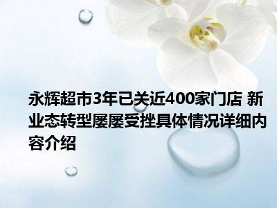 - 永辉超市3年已关近400家门店 新业态转型屡屡受挫具体情况详细内容介绍