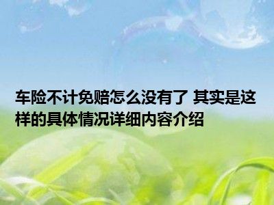 想必大家现在对于车险不计免赔怎么没有了 其实是这样的!方面的消息都是比较想了解的吧,那么针对于车险不计免赔怎么没有了 其实是这样的!方面的消息,小西自然是收集了一些相关方面的消息,那么如果您感兴趣的话,可以看下下面小西为大家收集到与车险不计免赔怎么没有了 其实是这样的!相关的消息吧。