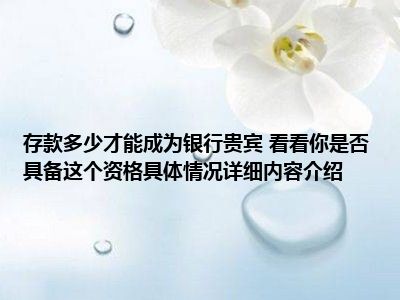 - 存款多少才能成为银行贵宾 看看你是否具备这个资格具体情况详细内容介绍