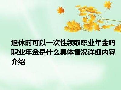 导读 想必大家现在对于退休时可以一次性领取职业年金吗 职业年金是什么方面的消息都是比较想了解的吧,那么针对于退休时可以一次性领取职业年...