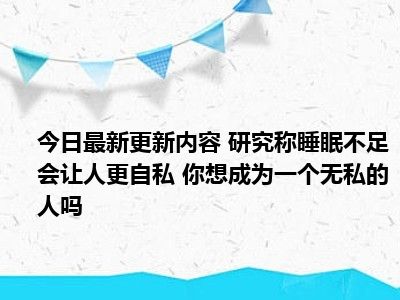 导读 目前研究称睡眠不足会让人更自私 你想成为一个无私的人吗的关注度特别高,热度非常高,这也证明大家现在都在关注这个事情,那么具体的研...