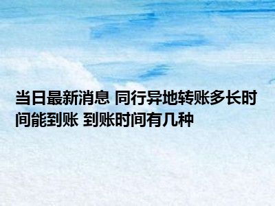 导读 同行异地转账多长时间能到账 到账时间有几种现在是大家比较关注的,因为目前同行异地转账多长时间能到账 到账时间有几种的热度是相对比...