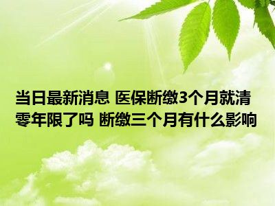 导读 医保断缴3个月就清零年限了吗 断缴三个月有什么影响现在是大家比较关注的,因为目前医保断缴3个月就清零年限了吗 断缴三个月有什么影响...
