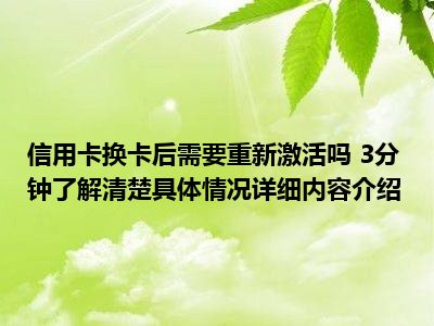 导读 想必大家现在对于信用卡换卡后需要重新激活吗 3分钟了解清楚!方面的消息都是比较想了解的吧,那么针对于信用卡换卡后需要重新激活吗 3...