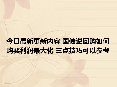 目前国债逆回购如何购买利润最大化 三点技巧可以参考!的关注度特别高,热度非常高,这也证明大家现在都在关注这个事情,那么具体的国债逆回购如何购买利润最大化 三点技巧可以参考!的事情是怎么回事呢,小编收集了一些相关的内容来给大家一起查阅一下把。