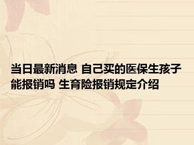 导读 自己买的医保生孩子能报销吗 生育险报销规定介绍现在是大家比较关注的,因为目前自己买的医保生孩子能报销吗 生育险报销规定介绍的热度...