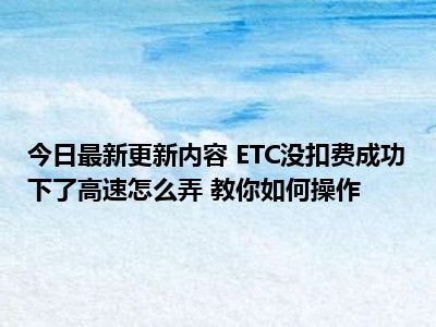 导读 目前ETC没扣费成功下了高速怎么弄 教你如何操作!的关注度特别高,热度非常高,这也证明大家现在都在关注这个事情,那么具体的ETC没扣费...