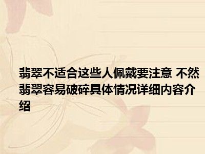 导读 想必大家现在对于翡翠不适合这些人佩戴要注意 不然翡翠容易破碎方面的消息都是比较想了解的吧,那么针对于翡翠不适合这些人佩戴要注意 ...