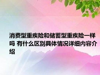 导读 想必大家现在对于消费型重疾险和储蓄型重疾险一样吗 有什么区别方面的消息都是比较想了解的吧,那么针对于消费型重疾险和储蓄型重疾险一...