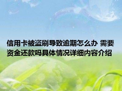 导读 想必大家现在对于信用卡被盗刷导致逾期怎么办 需要资金还款吗方面的消息都是比较想了解的吧,那么针对于信用卡被盗刷导致逾期怎么办 需...