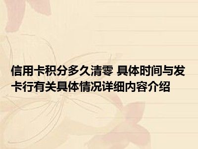 想必大家现在对于信用卡积分多久清零 具体时间与发卡行有关方面的消息都是比较想了解的吧,那么针对于信用卡积分多久清零 具体时间与发卡行有关方面的消息,小西自然是收集了一些相关方面的消息,那么如果您感兴趣的话,可以看下下面小西为大家收集到与信用卡积分多久清零 具体时间与发卡行有关相关的消息吧。