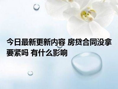 - 2022-08-25房贷合同没拿要紧吗 有什么影响具体情况详细内容介绍