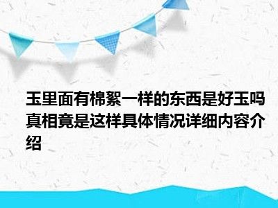 如今很多人都喜欢购买玉饰品来佩戴,不但可以增加美感,而且还可以带来许多好处。人们比较好奇,有些玉里面有棉絮一样的东西,那么这样的玉是好玉吗?针对这个问题,下面一起来了解下。
