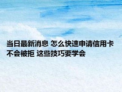怎么快速申请信用卡不会被拒 这些技巧要学会现在是大家比较关注的,因为目前怎么快速申请信用卡不会被拒 这些技巧要学会的热度是相对比较高的,那么既然大家对此都比较感兴趣,小S也是特地到网上去查找了一些相关的信息,下面就由小S来把这些信息来分享给大家一起查阅吧。