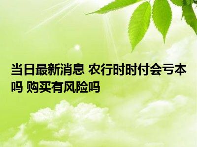 - 2022-08-25农行时时付会亏本吗 购买有风险吗具体情况详细内容介绍